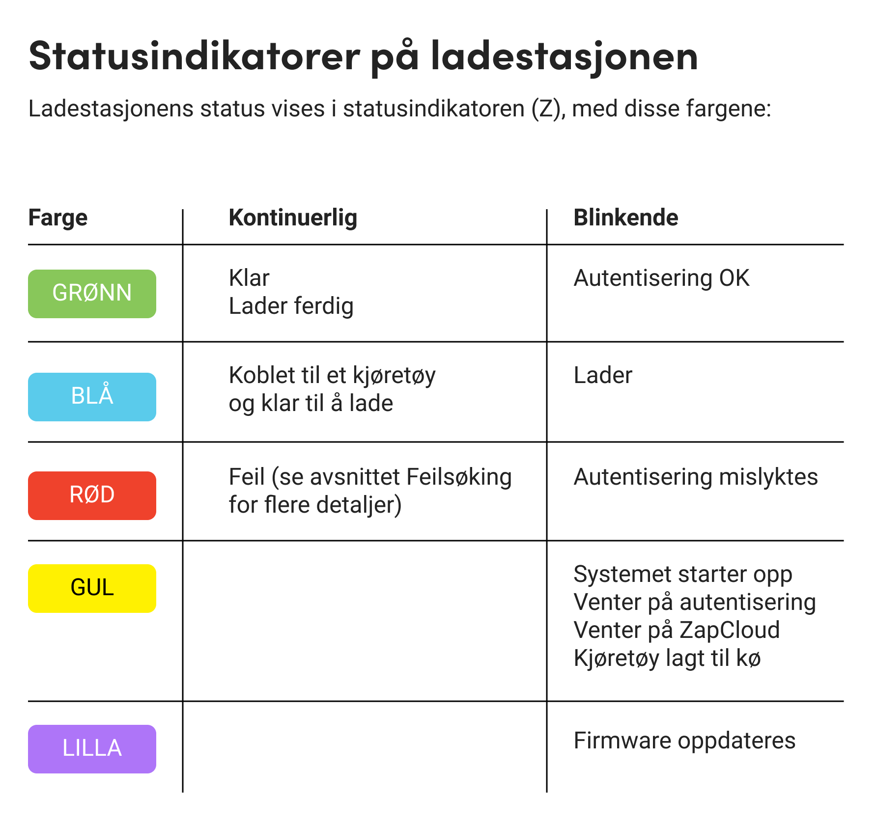 Hva betyr de ulike fargene på Zaptec ladestasjonen?