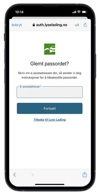 e-post adressen din i feltet "E-postadresse" før du trykket på "Fortsett".