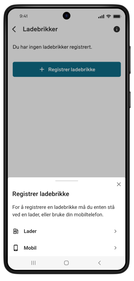 Du vil få opp to valg. Du kan registrere med å stå ved en lader, eller bruke din mobiltelefon.