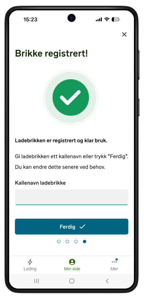 Ladebrikken er registrert og klar til bruk.
