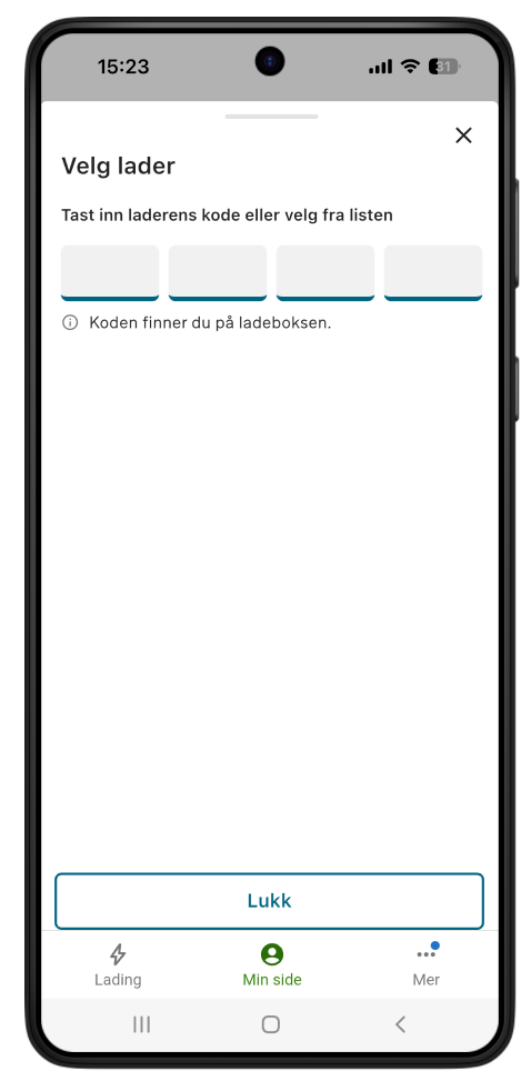 Tast inn laderens kode, som du finner på ladeboksen.